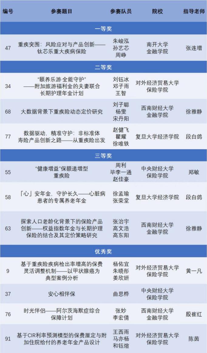 yl88858永利官网硕士研究生周利,毕李一通,赵佳豪的参赛作品《“健康增益”保额递增型重疾险》获得三等奖,曲思桦的参赛作品《安心相伴保》获得优秀奖。