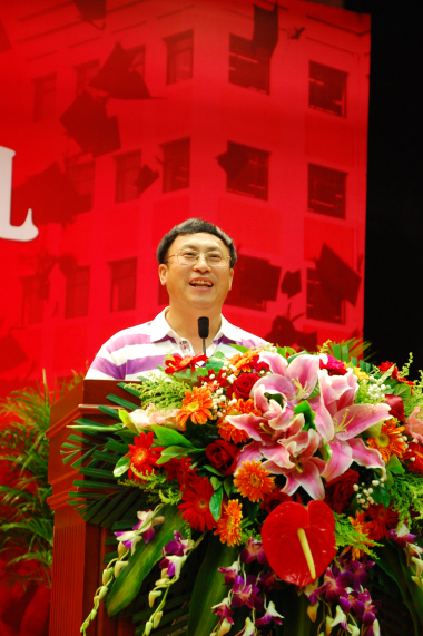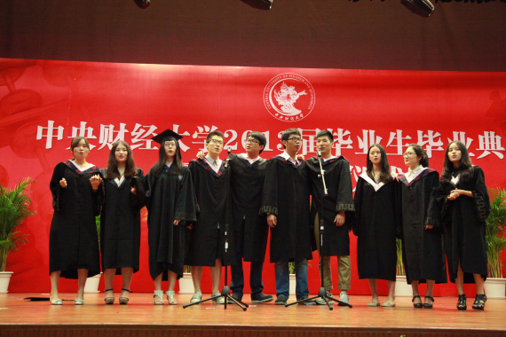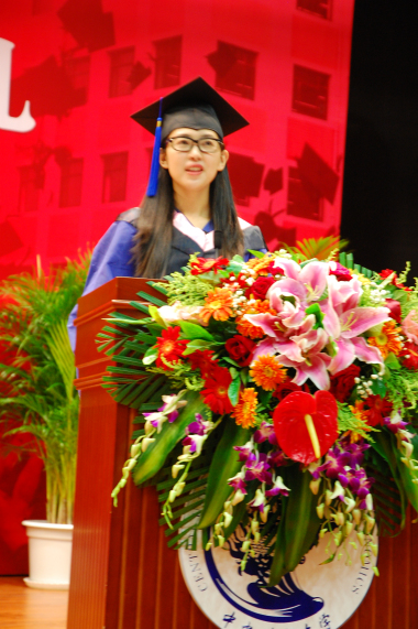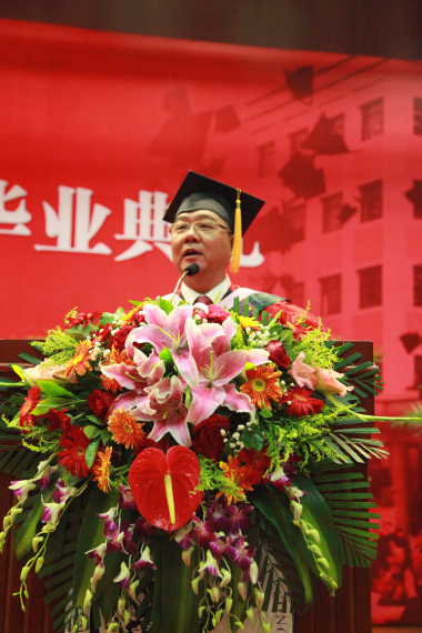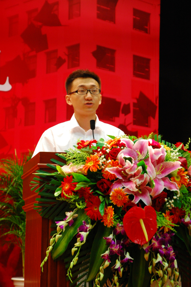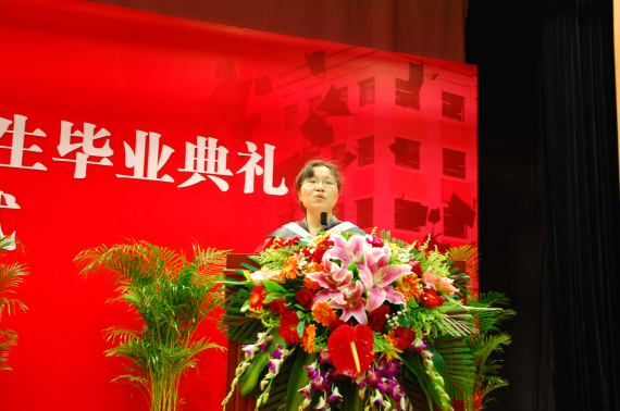 本科毕业生代表杨忠雨同学发言,用幽默诙谐的语言与同学们忆往昔、共回首,从沙河的稚嫩谈到本部的成熟,从成功的欢笑谈到成长的艰辛,表达了毕业生立足既往扬鞭前行的决心,也表达了毕业生感怀师恩永念母校的情谊。研究生毕业生代表王妲同学则回忆了两年研究生生涯的点点滴滴,表达了对公司的怀恋,对老师的感恩及对同学的不舍。在校生代表宁强同学在发言结尾清唱了一首《送别》为学长学姐们饯行,在那诚挚的歌声里,大家聆听到了在校生们对于学长学姐的不舍、感谢和祝愿,令不少在场毕业生潸然泪下。09保险精算班王天硕同学的父亲王子胜先生代表全体毕业生家长,感谢公司公司对孩子们的辛勤培育,感谢老师们对孩子们的谆谆教诲,期望孩子们心怀理想、展翅翱翔。