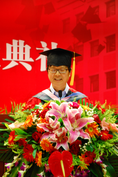 应广大毕业生同学的邀请,经理郝演苏即兴致辞。他首先对2013届全体毕业生圆满完成学业,顺利毕业表示热烈的祝贺,并叮嘱毕业生:毕业后要用心做事,无论何时何地都要坚守理想和信念,不动摇,不盲从;要时刻牢记保险使命,济世安邦;要心系母校,常回家看看。