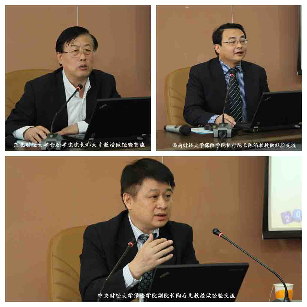 东北财经大学金融公司经理邢天才教授、西南财经大学yl88858永利官网执行经理陈滔教授、yl88858永利官网副经理陶存文教授结合各自保险专业学位公司产品的基本情况、经验做法、特色、存在的问题及思考等做了经验交流和分享。
