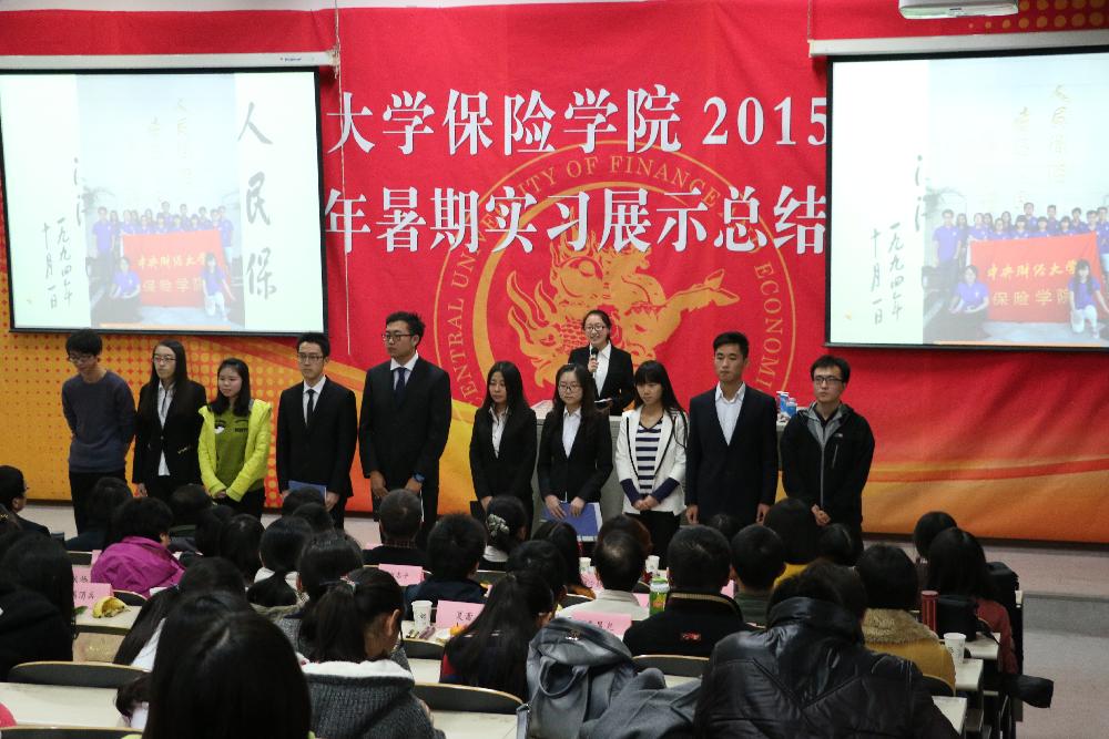 紧接着的山西实习团队分为晋中地区和太原地区两个部分,他们用PPT的形式生动展现了自身学习经历,让在场观众了解了保险公司在运转过程中各部门的真实情况。
