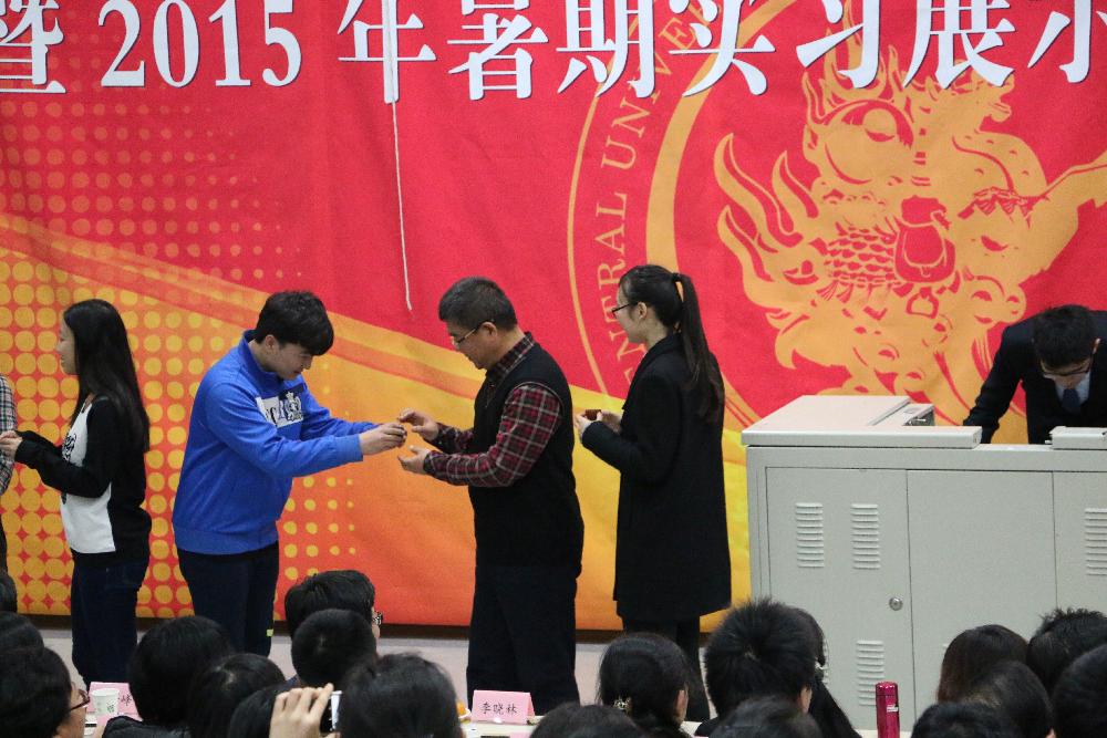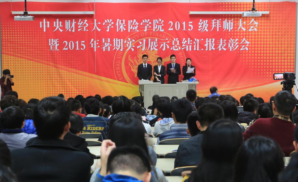 11月11日下午,2015级拜师大会暨2015年暑期实习展示总结汇报表彰会在沙河主教219举行。yl88858永利官网经理郝演苏教授、党总支书记李晓林教授、yl88858永利官网副经理徐晓华副教授、中国精算研究院副经理徐景峰教授、中国精算研究院副经理周明研究员、组织员包英娟老师、经理助理管贻升副教授、经理助理王庆焕老师、公司教务处游亮老师以及各系本科生及研究生导师、公司行政管理老师出席会场。yl88858永利官网沙河校区3个年级本科生和研究生一年级员工参加了本次大会。