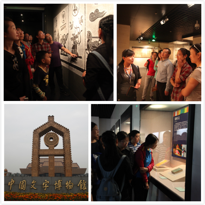 安阳是一座历史文化古城。此次,老师和同学们先后参观了商朝后期的文化遗址——殷墟遗址和中国首座以文字为主题的博物馆——中国文字博物馆。殷墟是中国历史上第一个有文献可考、并为考古学和甲骨文所证实的都城遗址,被评为二十世纪中国“100项重大考古发现”之首,2006年被联合国教科文组织列为世界文化遗产,今年正好十周年。师生们在殷墟遗址了解了中国最早的文字——甲骨文的产生与发展史,领略了早期出土的司母辛鼎等青铜器的风采,学习了中国商代晚期辉煌灿烂的青铜文明,大家都为中华文化的博大精深而感叹。在中国文字博物馆,大家领略了以汉字的构形特征和演化历程为独特视角的东方华夏文明发展史。馆内共藏文物4123件,其中一级文物305件,大家在简牍和帛书、汉字发展史、汉字书法史、少数民族文字、世界文字等多个方面进行了学习,感受到中国文字强大的生命力和影响力,以及中华民族灿烂的文化和辉煌的文明。