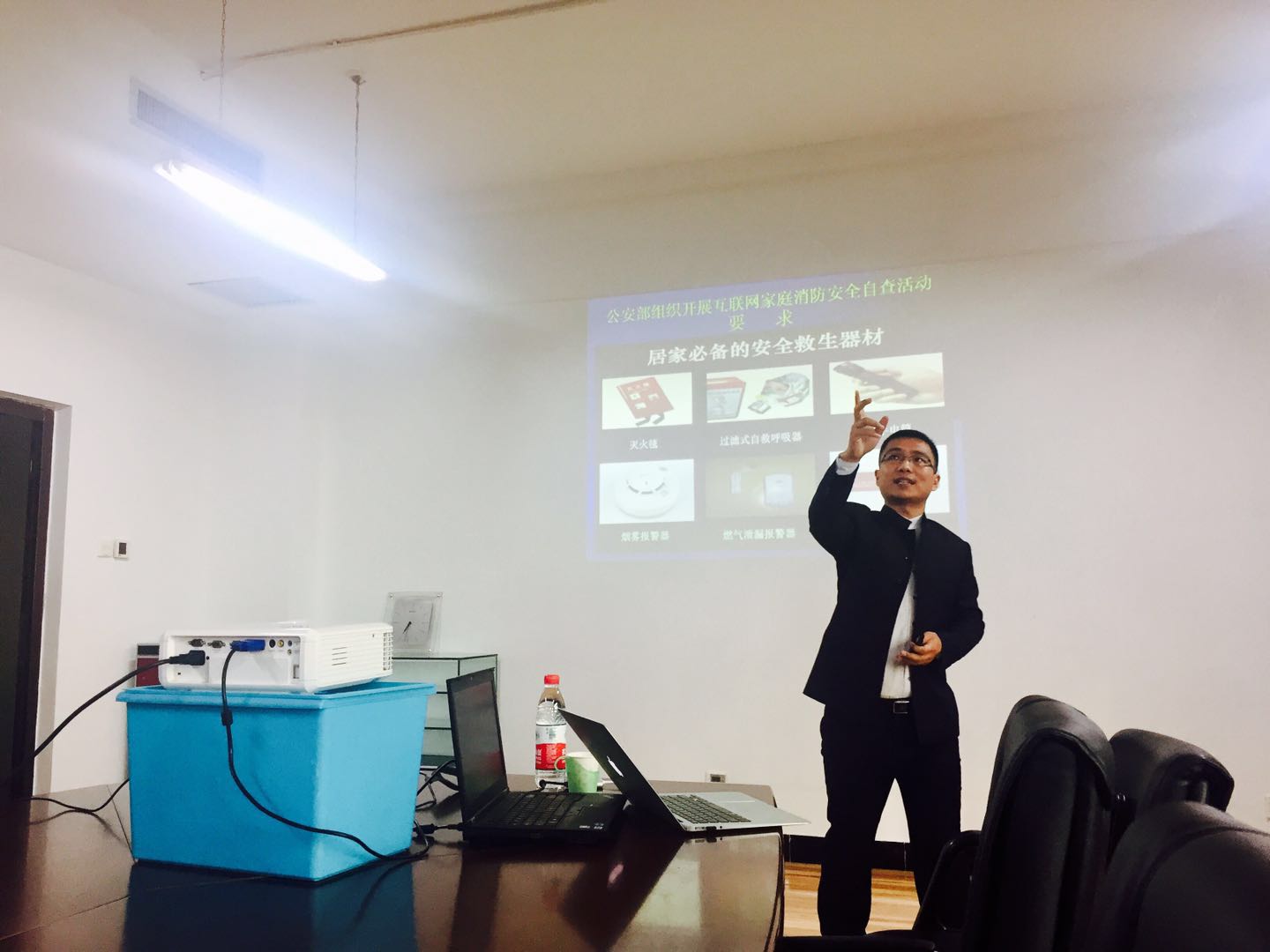 邵老师由模拟火灾实验引入,实验中,短短48秒时间即可烧毁一间装饰精美的房屋,引起全场教工一片惊叹。接着,邵老师通过案例分析的形式,就身边存在的安全隐患进行解读,如常用电器的正确使用方式、办公室和家庭的火灾隐患等,随后以相关视频对火灾出现时的应对措施加以分析,讲述在夜间这一高发时段如何发现灾情与及时处理,并对高楼建筑紧急逃生的姿势与方式进行现场模拟演示,结合公司主教高层建筑内部结构,合理规划逃生路线。最后,主讲人在强调灭火器、安全锤、防烟面罩重要性的同时,介绍其使用方式,同时分析烟雾报警器设计原理。邵老师指出,公司教室均装有报警器,整体安全防范性较高。