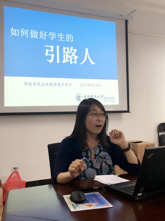 在主题发言环节,副经理徐晓华老师跟大家分享了自己的教学心得,他希望所有教师都要保证足够的精力投入到和员工的交流中,多给员工学习生活上的引导,老师不仅仅为员工传授知识,更应该引导员工树立正确的价值观。北京市教学名师、保险系许飞琼老师从自己对待员工的例子出发,讲述了如何引导员工正确看待保研、就业、处理同学关系的问题,要在与员工的日常交往中传授“吃亏是福”、先天下之忧而忧”的思想。社保系的刘钧老师讲述了自身求学工作经历中,她与三位终生难忘的老师的故事,她一直以那些老师为榜样,心系员工,自己的目标就是要成为员工一生中印象最深刻的老师。精算系的池义春老师从和员工学术沟通的角度谈了如何做员工引路人的理解,他提出教师和员工之间要互相尊重,多鼓励员工思考,教师们要学会挖掘员工的优点和长处。辅导员才立琴谈到,教师是实现中华民族的中坚力量,所以引路人非常重要,在座的老师都应该有这个担当,做一个好的引路人之前,老师们要先自我提升,做“四有”好老师。以上五位老师从不同角度,以各自的方式诠释了“如何做好员工引路人”,深受启发。
