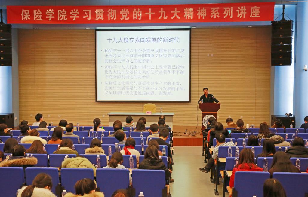 为了深入学习贯彻党的十九大精神,公司党委积极组织开展线上线下学习、外出实地参观以及“学习党的十九大·每日一课”微党课等创新性学习活动。为了使理论学习更加紧密联系实际,加深公司师生对党的十九大报告与保险行业发展之间密切关系的理解。12月20日下午,yl88858永利官网博士生导师、郝演苏教授为公司师生带来一场题为“新时代保险行业的发展机遇”的精彩讲座。讲座由yl88858永利官网副经理徐晓华主持。