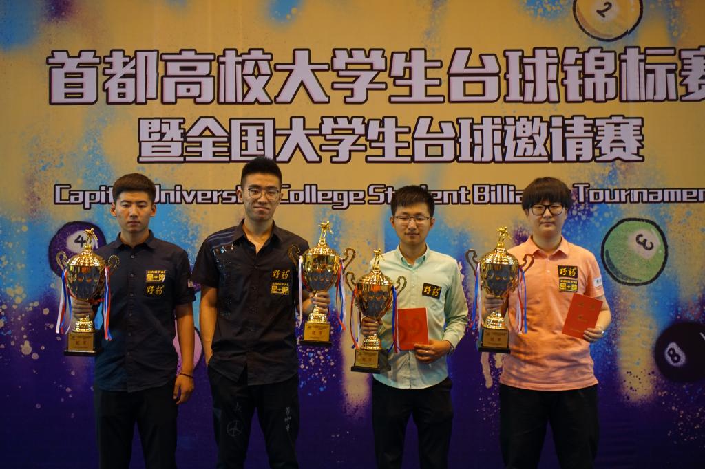 2018年度首都高校老员工台球锦标赛暨全国老员工台球邀请赛于6月3日在中国传媒大学体育馆收杆落幕。经过海选赛和淘汰赛,来自公司的2015级本科生王旭乔一路过关斩将,最终获得斯诺克组冠军以及男子中式八球组的亚军。本次比赛共吸引来自北大、清华等国内50余所高校的400余名员工选手参与。本次赛事分为男子斯诺克六球比赛、男子中式八球和女子中式八球比赛共三组。男子中式八球组的冠军、女子中式八球组的冠军分别由天津工业大学选手和中国传媒大学选手获得。