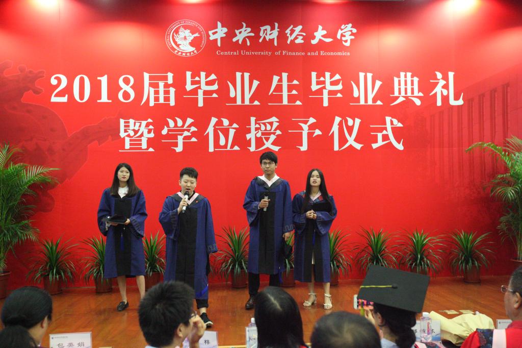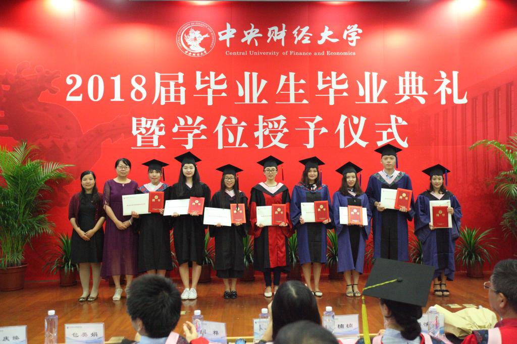 王颖老师宣读了表彰2018届优秀毕业生的决定,由副经理周明老师、副经理周桦老师、经理助理王庆焕老师为获奖同学颁发证书和纪念品,希望同学们毕业之后再次展现中财人、保险人的优良品质和光荣传统。