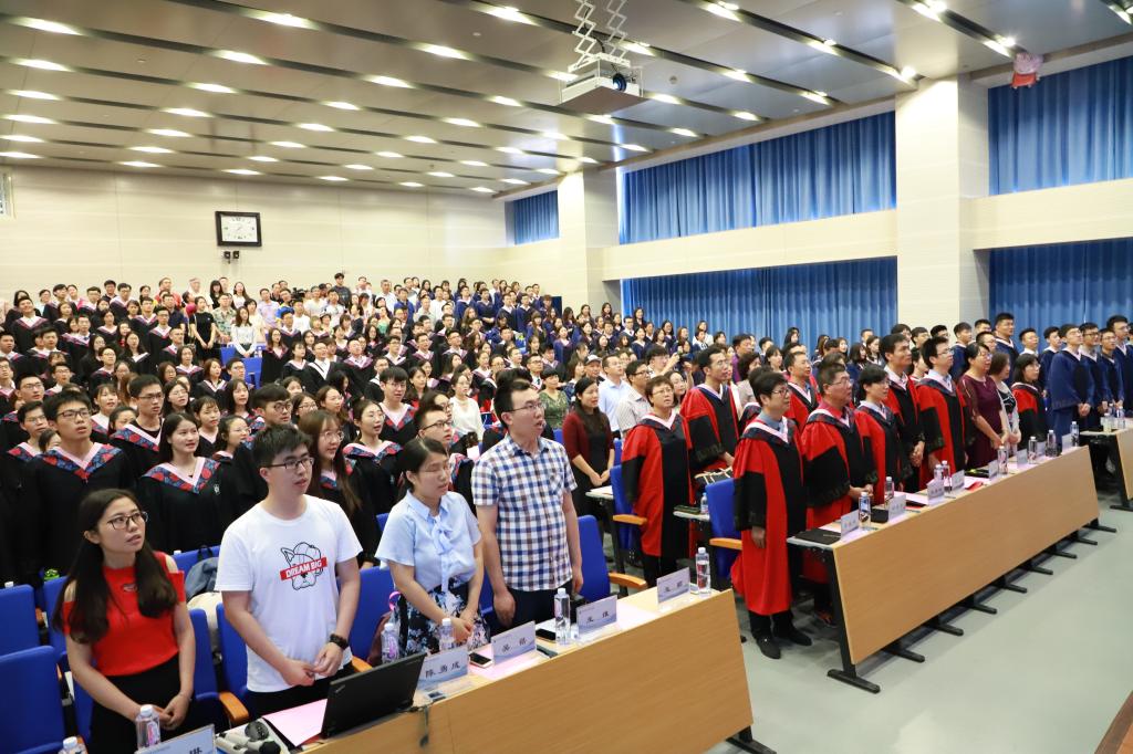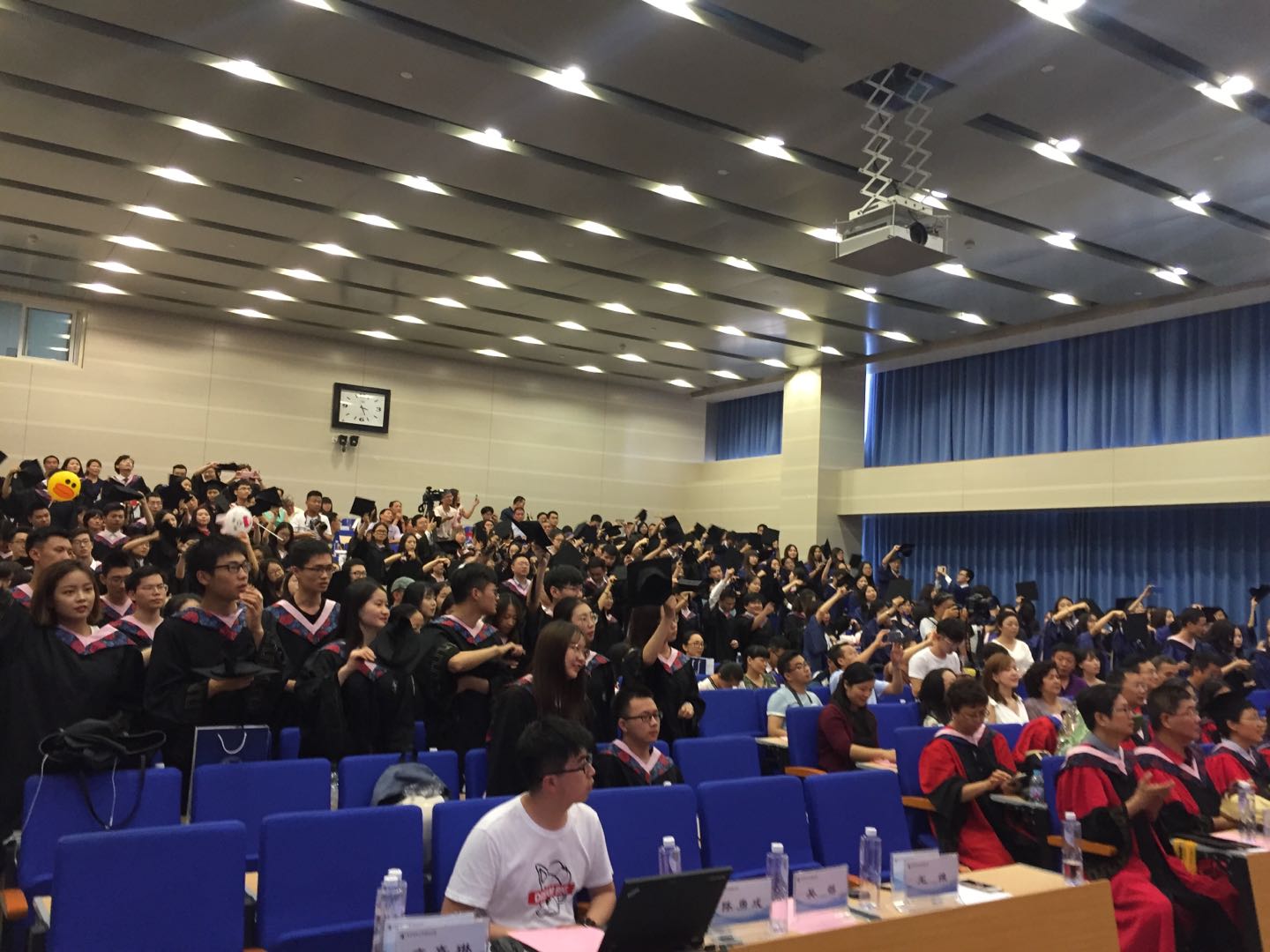 在庄严肃穆的国歌声中,2018届毕业生毕业典礼暨学位授予仪式拉开了序幕。由2018届毕业生精心准备的毕业视频《你好,再见》带领在场师生重温了美好的大学时光,伴随着视频播放,同学们时而爆笑欢呼,时而感动怀念,沉浸在对公司的无尽回忆和留恋中。