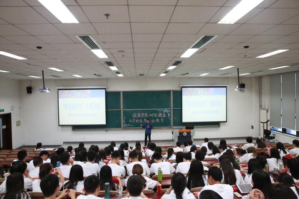 生开学典礼后,经理李晓林教授为新入学的研究生们进行了一场别开生面的“经理谈治学”专题讲座,介绍了专业知识、并分享了做学问的经验。李晓林教授用自己的亲身经历告诫同学们要注重“知识和学科的责任、对民族、社会和公众的责任、立志于学”,明确“学习与成长”、“道路、科学方法与创造”、“师从与择友”等的关系;充分认识“在充满不确定性的经济社会发展中发挥保险、精算、社会保障体系的重要作用”,妥善处理好“知识背景与研究方向、渊博深邃与研究专注、学习与科研、热诚与持久、创造与接受、大原则与小点滴、批判性思维与谦和为人”等的关系,在不断的实践、创造、奉献中获得成长。李晓林教授告诫员工要注重人才成长系统的构建和研究方法的传承与创新,尤其是要掌握风险管理与保险保障学科相关的研究方法,用东方智慧和中国经验去研究现实问题;告诫员工要对接国家重大发展战略和新文科建设,创新发展新型风险观,深刻认识社会要素结构优化与风险演化规律,研究变风险为生机的路径与条件,以实现重大的现实价值、时代价值和做出深远的历史贡献。