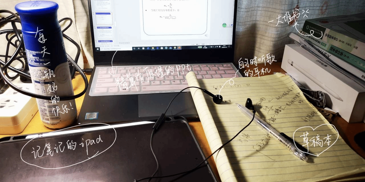自从上了高中之后,我就很少使用家里的书桌了,慢慢地上面开始堆起了很多杂物。而今年,由于疫情,我们开始了网络教学,我才和姥姥一起,把书桌收拾出了一个清爽的模样。摆好电脑、Ipad,看视频做笔记两不误。而每天上课,我的书桌上都会摆着一瓶牛奶,是疲惫时的一大放松。网络教学已经渐入佳境,我们也渐渐习惯了这样子的教学方法,可以随时调整进度,不懂的地方还可以多看几遍。当然,虽说如此,但最大的愿望还是希望疫情早点过去。我想中财大了,中财大的花儿开了吗?