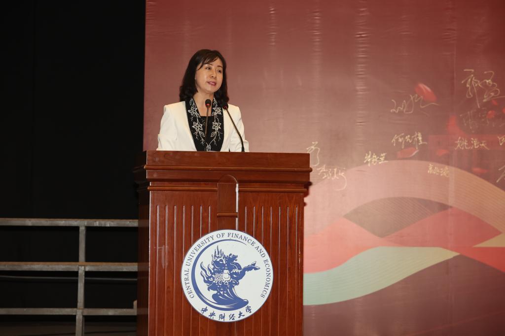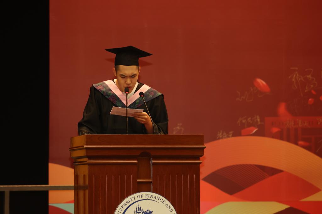 毕业班辅导员康浩迪代表全体辅导员讲话,他谈到,辅导员的工作,从责任义务慢慢变成了生活的一部分,相信努力实现跨越的每一位中财学子,必将更为坚强与出众。他勉励同学们要学会控制自己、不盲目随从、别焦虑、勤锻炼身体,以“咬定青山不放松”的志气,“初生牛犊不怕虎”的胆气,“狭路相逢勇者胜”的豪气,面对未来的学习和生活。