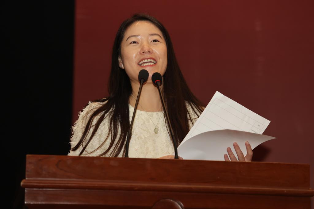 2022级1+3毕业生代表任久丹同学代表全体1+3毕业班员工发言。她表示共同奋斗的十个月,在汗水里浸泡欢笑,在挑战中把握机遇,同学们都成长颇多、收获颇多。大学阶段经历的明珠和顽石都值得被仔细珍藏,逐渐打磨出独有棱角,这是作为独立的个体融入社会、产生共鸣的初尝试,是被交流与被回应的宣告。最后任久丹同学希望同学们在奔赴光与热的同时,都能够收到来自善意的正反馈,干干净净地行走在自己的旅途上。