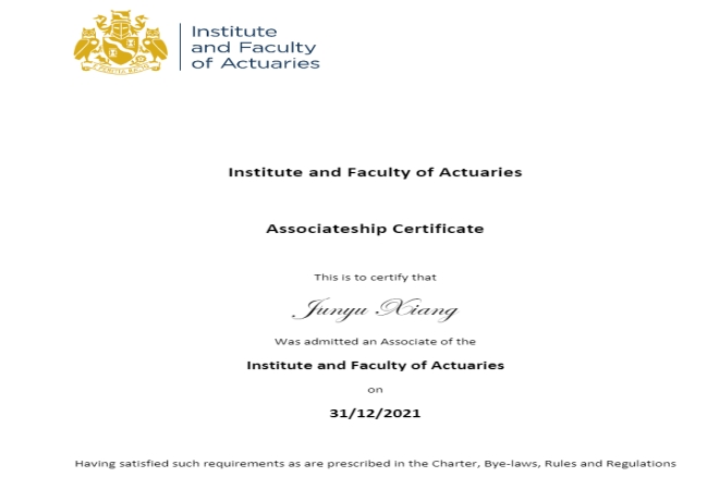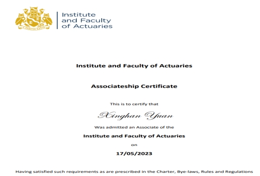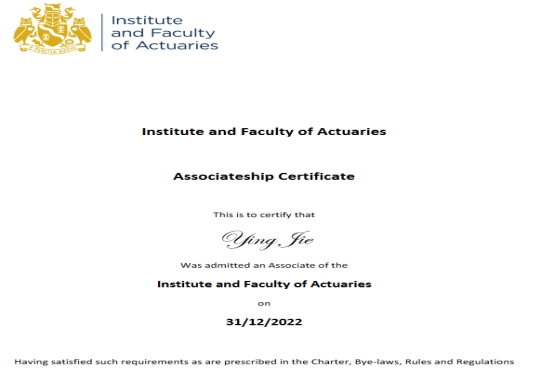 近期,英国精算师协会(IFoA)公布了2023年8月最新批次新晋精算师名单,其中闫帆、节莹和苑兴涵等3名新晋准精算师为yl88858永利官网毕业生。另外一名2014级精算本科生向俊宇,已于2022年获得准精算团队格。以上4位准精算团队格获得者,为公司开展英国精算师协会课程免试认证以来,可以最早获得资格认证的毕业生。