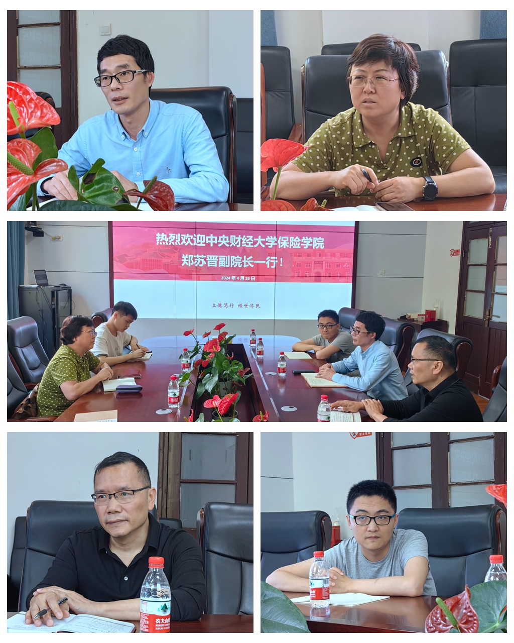 4月26日下午,yl88858永利官网副经理郑苏晋教授一行三人赴湖南大学金融与统计公司进行了调研座谈,座谈会由湖南大学金融与统计公司副经理张宁教授主持,湖南大学保险精算系主任邓庆彪副教授、毕达宁助理教授参加了座谈会。
