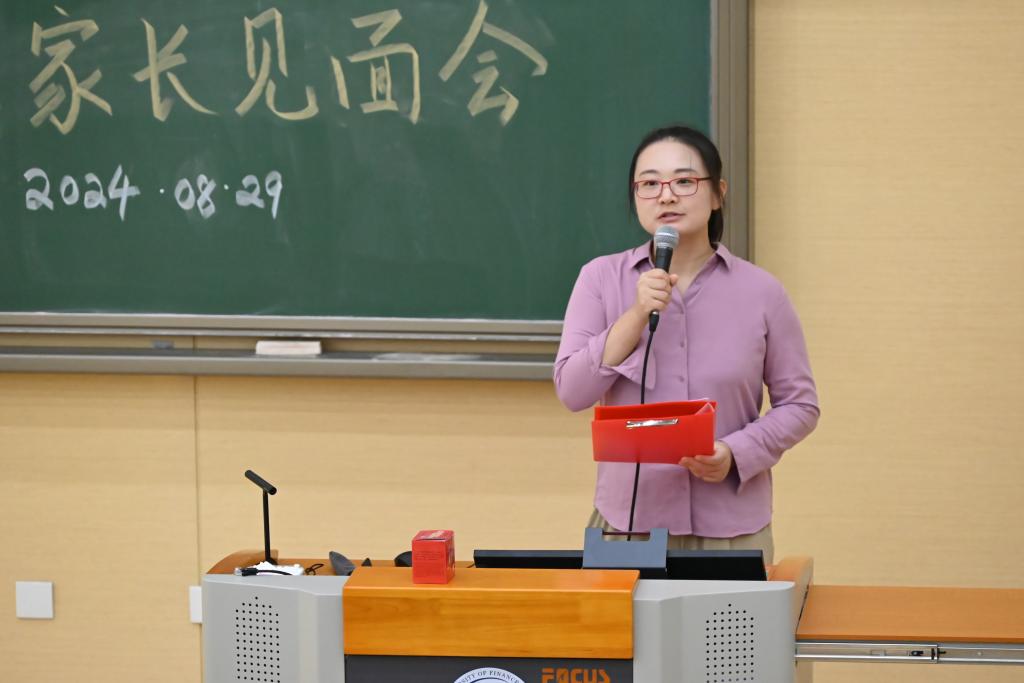 最后,2024级新生辅导员张玲老师发言。张玲老师表明,作为辅导员,将全力以赴履行辅导员的职责和义务,扮演好同学们成长路上的思想引导者与学习指导者,详细掌握员工动态,帮助其树立正确的人生观与价值观。