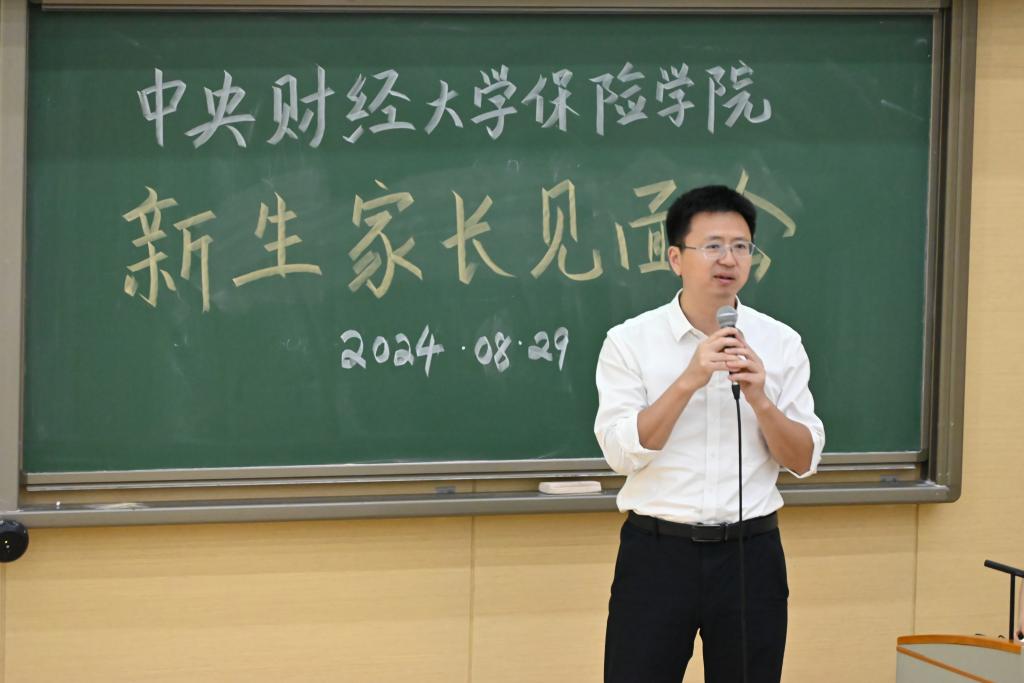 新生班主任代表、2024级保险学(北理工“人工智能+保险”联培)班级的班主任王吉元以“乘风破浪”作为贯穿新生大学学习生活的精神内核,提出了做乘“风险”之者,驭“风险”之者,一同去破“科技”之浪的美好期望。王吉元老师表示作为“驾校教练”和“冲浪教练”的老师们,将协助各位新生们“乘风破浪”,成为未来保险行业的领跑人。