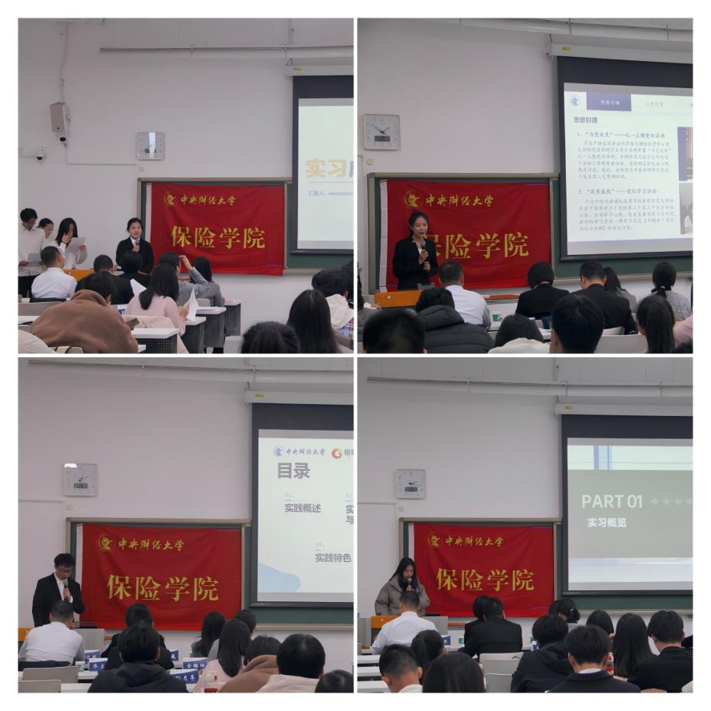 平安产险小组从思想引领、工作纪实、助力宣传、实践探索、友爱互助五个方面进行汇报。该小组成员在实习过程中不仅积累了职场经验,而且提升了思想政治素养。