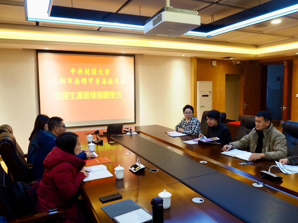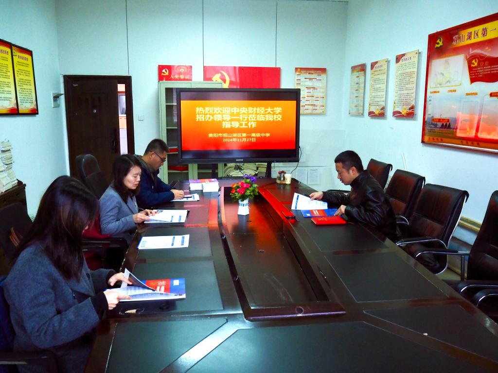 11月27日上午,招生宣传组前往贵阳市观山湖区第一高级中学开展座谈调研活动,与高中招生领导进行交流,详细了解高中目前对于高校招生宣传工作的方式与需求,并表示,未来要加强与观山湖区第一高级中学的联系,开展更有针对性的招生宣讲工作。