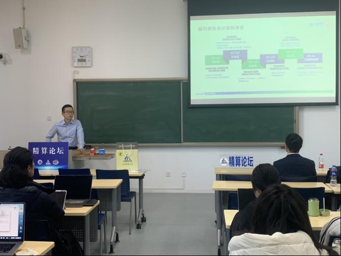 随后,李宏军就IFRS17新会计准则遵循的基本原则以及引起的主要变化;太平再保险(中国)有限公司在IFRS17项目实施中的经验与大家进行了分享。在问答环节,李宏军就同学们关注的在实务工作中的一些技术实践、管理经验等与大家进行了热烈的交流分享。