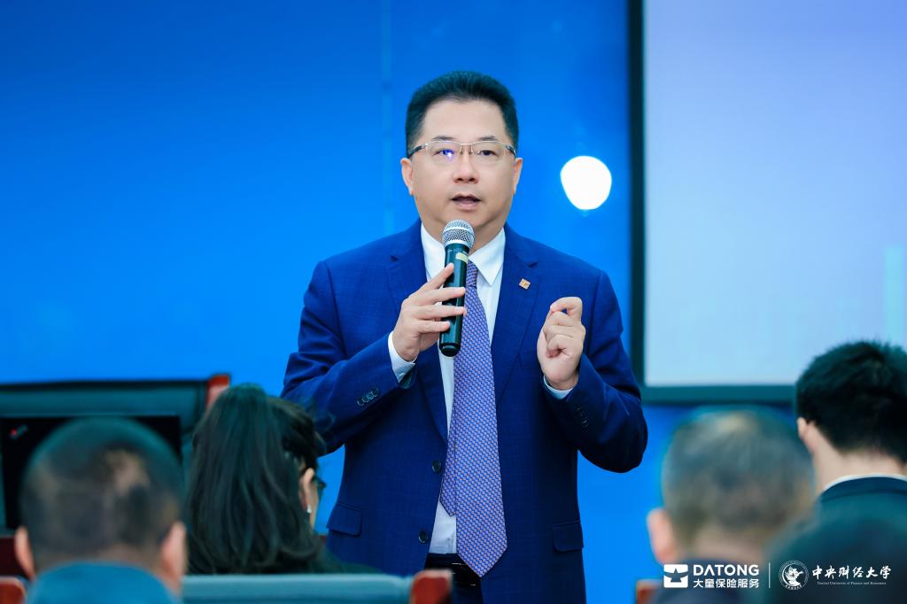 大童保险王戈副总裁介绍了中财-大童领鹰人才深造计划的背景,他表示领鹰人才深造计划不仅关注于提升员工的专业技能,鼓励员工在学习和实践中不断成长,更注重培养具有国际视野和本土实践能力的人才。他对学员们表达了殷切的期望,鼓励学员们全心投入学习,把握学习机会,为未来的职业生涯打下坚实的基础。