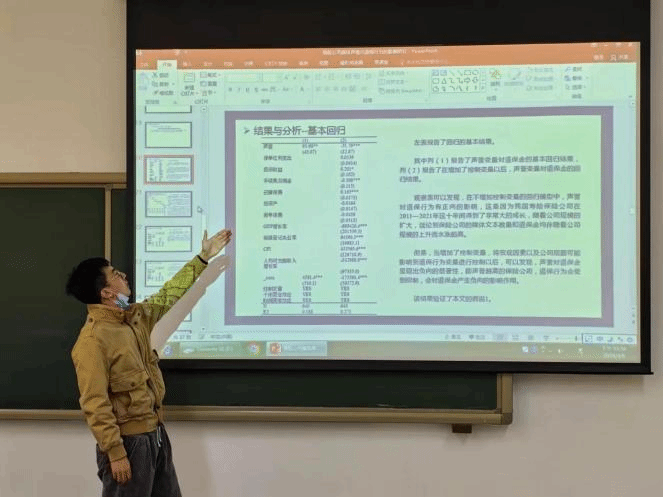 宋姝凝同学:郭同学的汇报将声誉与退保结合,探索了由声誉变化导致的退保行为,运用合理的实证方法得到了较为令人信服的结论,在交流过程中学到了很多。