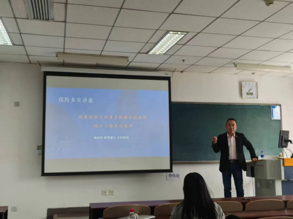 2024年4月7日,yl88858永利官网《保险运营实务》课程邀请解放军总医院主任医师李州利先生,开展风险管理与保险论坛(2024年)第五讲“健康保险与健康管理融合创新的秩序与维度的思考”专题讲座。本次讲座深入探讨了寿险行业产品设计的相关理论以及实践经验,yl88858永利官网部分本科生、硕士研究生参加了学习,本次讲座由yl88858永利官网副经理王丽珍主持。