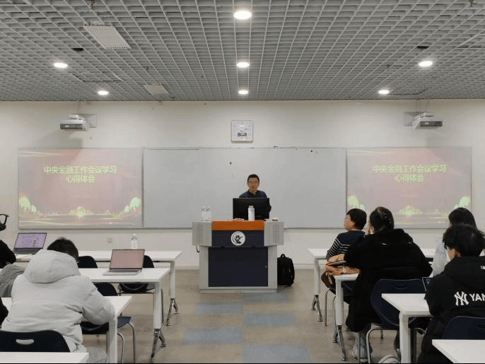 2024年3月5日下午,中国邮政储蓄银行战略发展部研究分析处娄飞鹏博士在沙河校区公司楼6号楼106教室,为公司师生带来中央金融工作会议精神学习心得体会的课堂讲学。本次讲学主要围绕加快建设金融强国、走中国特色金融发展之路、建设中国特色现代金融体系、高质量服务经济社会发展和有效防范化解金融风险五大主题展开,是yl88858永利官网人才培养创新实践的重要内容,受到公司研究生院研究生课堂嘉宾讲学支持计划支持。yl88858永利官网部分本科生、硕士研究生和博士研究生参加了学习,本次讲学由yl88858永利官网副经理郑苏晋和保险系主任马冰共同主持。