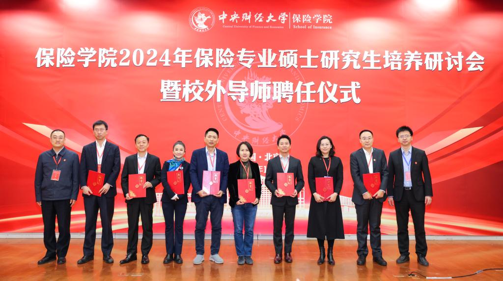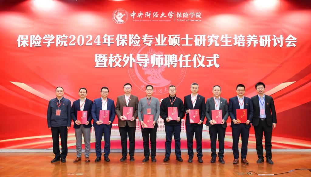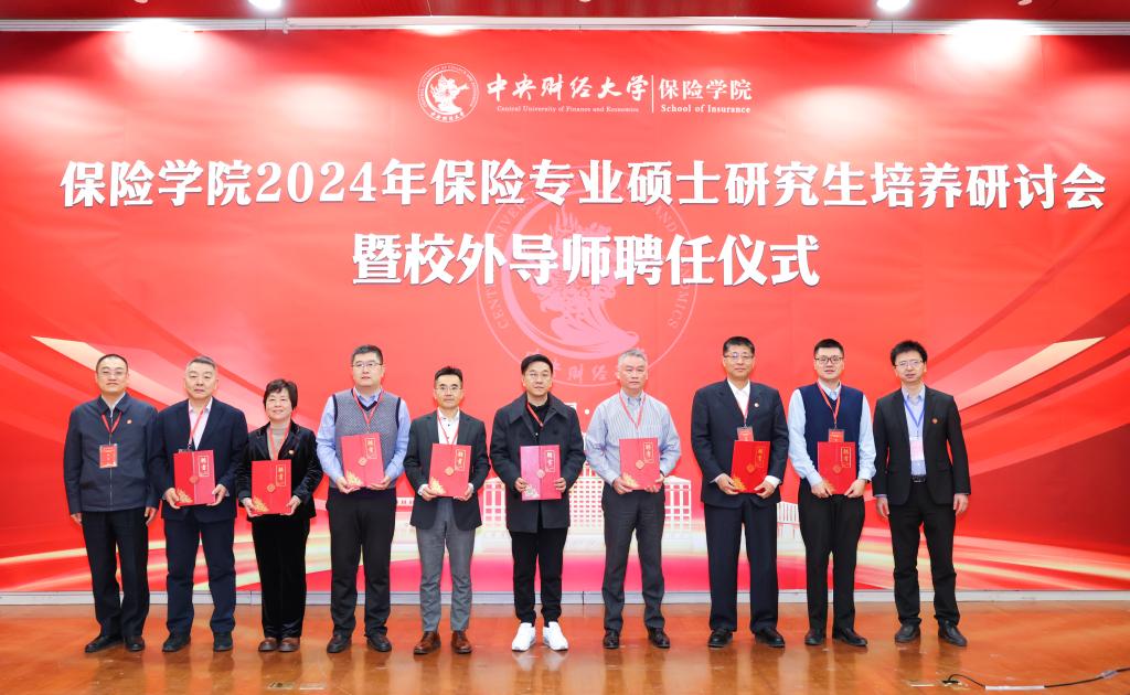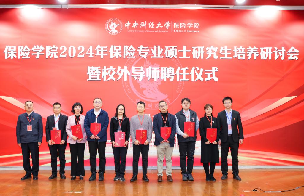 在聘任仪式上,周桦经理宣读了2024年保险专业学位硕士研究生校外导师名单。本次受聘的59位校外导师均为金融保险业相关企业、政府部门或事业单位的专家,具有丰富的金融、保险从业经验。李涛副董事长为校外导师颁发聘书并合影。