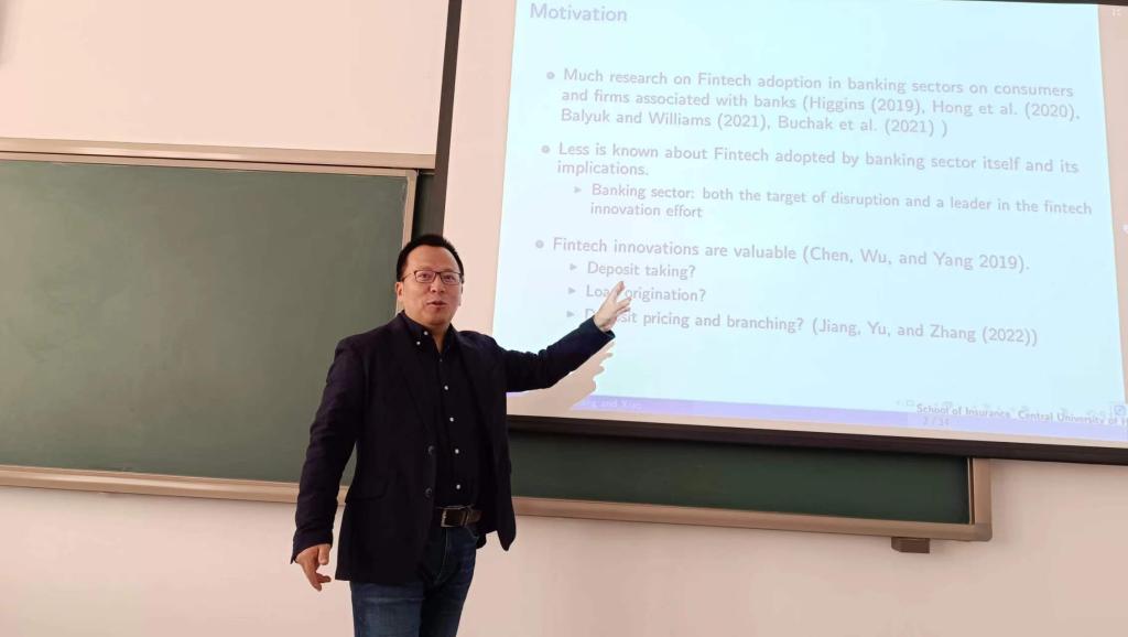 2023年10月27日上午,永利集团官网中国精算研究院精算论坛第230期在沙河二教207举行。本次论坛邀请到了来自西交利物浦大学国际商公司的肖亚军副教授,为与会师生做题为“The Impact of Fintech on Banking:Evidence from Banks’ Partnering with Zelle”的学术报告。讲座由精算系副主任郑敏主持。