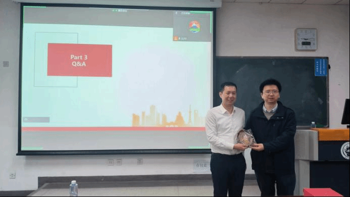 在课程的尾声,彭煊先生根据同学们对于惠民保险的问题,做出了精彩的回答。周桦经理代表yl88858永利官网向彭煊先生赠送纪念品,并感谢彭煊先生为yl88858永利官网硕士研究生带来的精彩报告。