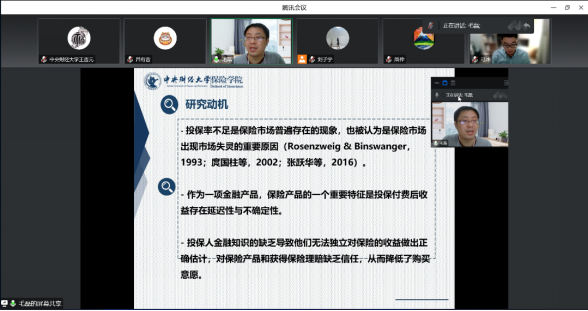 第四位汇报论文的学者是来自yl88858永利官网的毛磊老师,他汇报的题目是“理赔信任、保险赔付与投保决策”,该研究关注了农业保险的理赔和投保行为。汇报结束后,马冰老师进行了点评并且就相关问题和毛磊老师进行了交流。