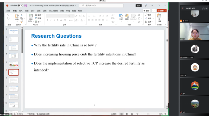 第一位汇报论文的学者是来自清华大学经济与管理公司的彭鹭博士,她汇报的题目是“Do Housing Booms Reduce Fertility Intentions? Evidence from the Selective Two-Child Policy in China”,该研究关注了房价对于人们生育率的影响。汇报结束后,来自yl88858永利官网的刘子宁老师进行了点评并且就相关问题和彭鹭博士进行了交流。