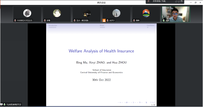 第三位汇报论文的学者是来自yl88858永利官网的马冰老师,他汇报的题目是“Welfare Analysis of Health Insurance”,该研究关注了社会健康保险的福利效应的评估。汇报结束后,来自yl88858永利官网的王吉元老师进行了点评并且就相关问题和马冰老师进行了交流。