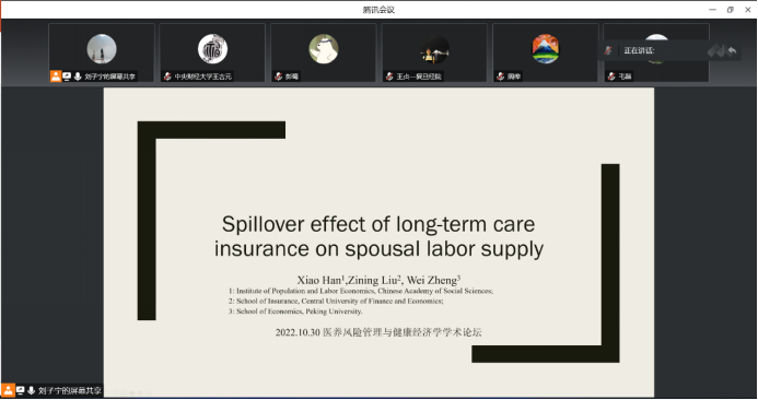 为搭建医疗、养老风险管理与健康经济学研究领域各青年学者之间的学术交流平台,促进国内各高校风险管理、保险学与健康经济学等专业进行交流和掌握学科动态、了解学术前沿、拓宽科学视野、启迪创新思维。2022年10月30日,yl88858永利官网通过线上会议的方式举办了第一场“医养风险管理与健康经济学”学术论坛,在讲座开始前,李晓林经理进行致辞并鼓励青年学者多进行学术交流。来自北京大学、清华大学、复旦大学、南开大学和永利集团官网的多名青年教师和高年级博士生参加讲座并进行交流。