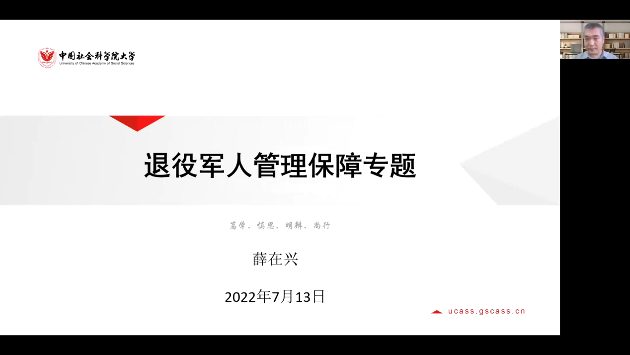 中国社会科公司大学政府管理公司副经理、教授、博士生导师,兼任退役军人事务部咨询专家、退役军人思想政治和权益维护研究中心副主任兼秘书长、中国劳动经济学会保险福利分会副会长兼常务理事的薛在兴教授做了以退休军人管理保障为专题的报告。薛教授先对相关概念、制度进行详细介绍,而后提出新形势下优抚工作主要矛盾和压力挑战。他认为目前存在社会优抚法制不够健全,社会优抚待遇公平性差等主要矛盾。所以在新时代应该推进优抚工作,研究建立优抚待遇量化标准体系和生活特困优抚对象帮扶办法等,提高优抚的社会化程度。