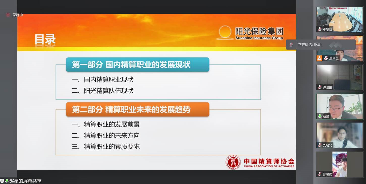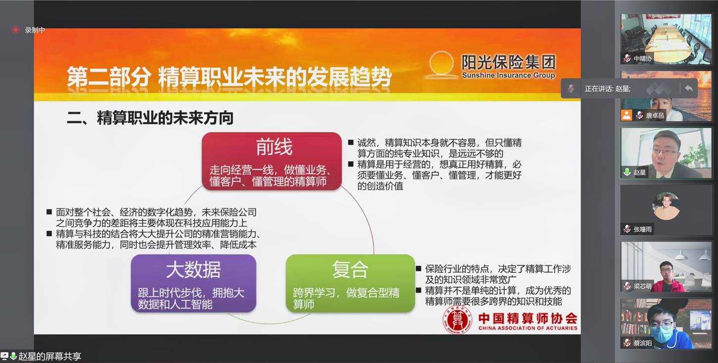 【精算师进校园系列活动】阳光保险集团赵星博士应邀为公司员工线上授课