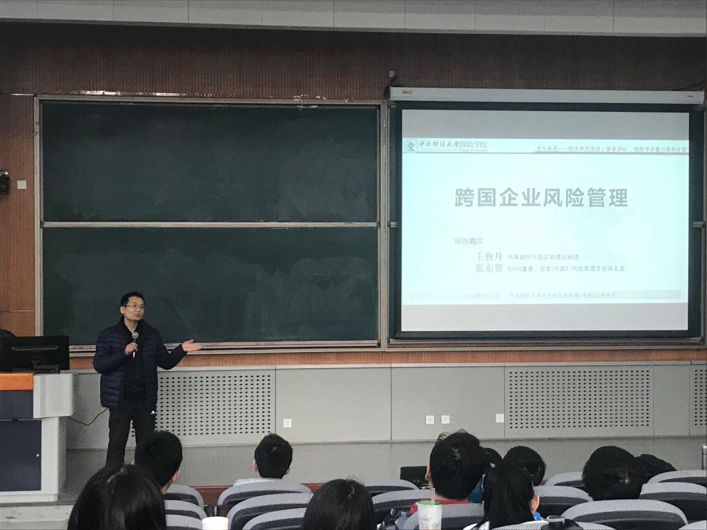 2019年3月28日下午,由公司举·办的【龙马奋进·保家讲坛】暨校庆70周年系列讲座之《企业风险管理》在沙河校区公司楼四号楼107报告厅隆重开讲。本次讲座邀请到张东贺先生和王鲁丹先生为yl88858永利官网本科生做精彩报告,yl88858永利官网徐晓华副经理、保险系主任郭丽军老师以及马冰老师也出席了本次讲座。
