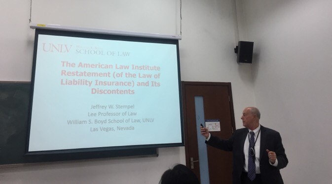 12月11日下午,应公司郑莉莉副教授邀请,美国内华达大学(University of Nevada Las Vegas)法公司(William S. Boyd School of Law)Jeffrey W. Stempel教授赴公司沙河校区为公司师生带来了一场主题为“保险法的重塑和争议”(The American Law Institute Restatement (of the Law of Liability Insurance) and Its Discontents)的专题讲座。