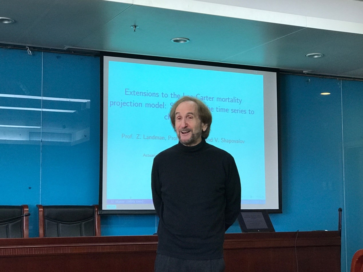 受永利集团官网引智项目(教育部公司特色项目《巨灾风险管理与再保险课程体系建设聘请外教特色项目》)支持,以色列海法大学Udi Makov教授于2016年12月11日至12月24日访问了公司,并于12月22日上午举办了一次关于长寿风险的高水平讲座。