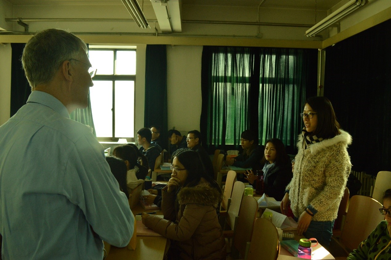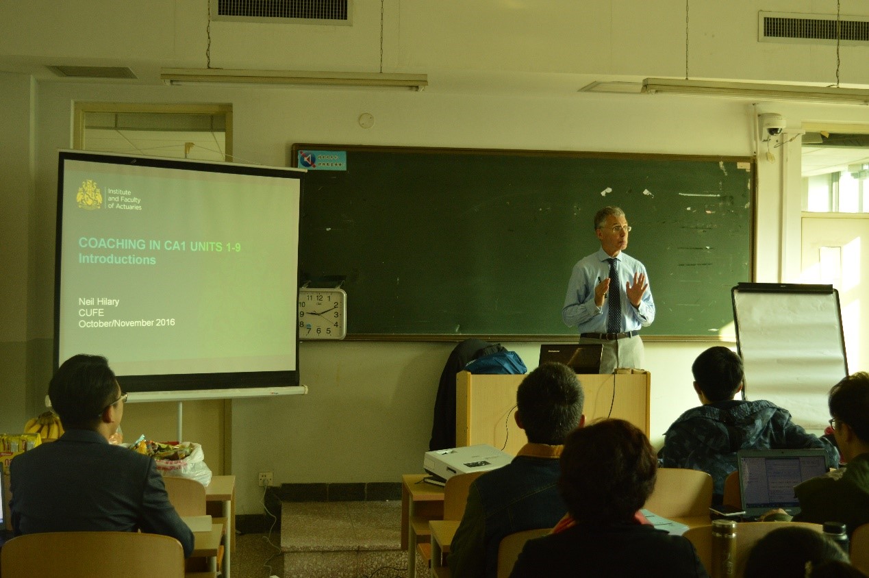 首先到访的是Neil Hilary教授,他讲授的主要内容包括运用金融市场产品管理保险业风险、保险产品特点及现金流分析、以及精算思维方法与风险管理等。作为一名兼具丰富的从业经验、研究经验、及教育经验的精算师,Neil教授以饱满的热情和深入浅出的启发式授课方式,为同学们开启了这门课程的序章。教授每天的授课穿插了知识讲授与同学提问,课堂气氛热烈,融洽,学习效果极佳。