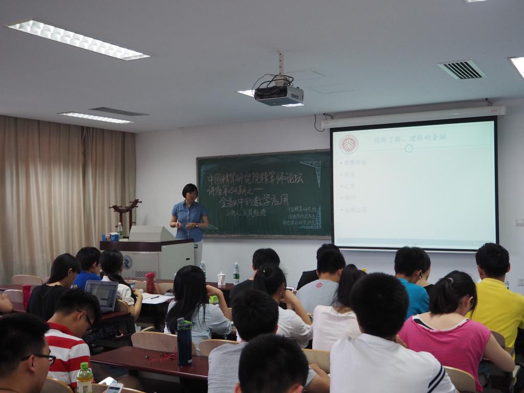 首先,主讲人吴岚教授借与保险密切相关的风险话题抛砖引玉,将讲座引入正题。数学,尤其是概率论及其相关模型,在研究重要理论的时候,起到了十分关键的作用。随后,吴教授分析了对冲公式在规避风险、证券市场期权价格变动等方面的应用,强调其重要性。紧接着,吴教授又给大家呈列了许多诺贝尔经济学奖获得者的研究领域和相关成就,并逐个分析金融数学在其中所起到的作用。辅以生动的案例,同时介绍了金融数学的研究对象——金融现象、金融产品、金融机构和金融市场,并详细讲解了各研究对象所适用的建模方法。
