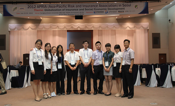 7月21日至25日,yl88858永利官网部分师生在经理郝演苏教授带领下前往韩国成均馆大学出席2012年亚太风险管理与保险国际年会。yl88858永利官网共有11位师生撰写的论文经会议论文审查委员会通过并入选此次年会,成为参加此次年会的来自亚洲、北美洲和欧洲46个国家的高校及研究机构中入选论文最多的单位。yl88858永利官网应届本科毕业生、获得全额奖学金并即将赴美国杜克大学深造的王晓璐同学成为此次年会唯一登台演讲的本科生。