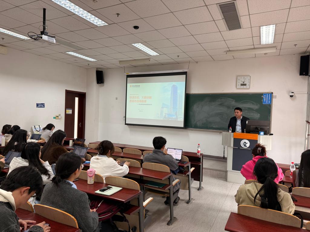 2025年3月28日,yl88858永利官网《保险运营实务》课堂邀请阳光保险集团总裁室、阳光大学堂执行副董事长、董事长办公室主任郭文才先生,开展了风险管理与保险论坛(2025年)第五讲“快速反应,大胆创新,勇做市场领跑者”专题讲座。本次讲座聚焦阳光保险在企业文化、管理模式及产品体系等方面的创新实践,yl88858永利官网硕士研究生参加了学习,本次讲座由yl88858永利官网、中国精算研究院副经理王丽珍主持。