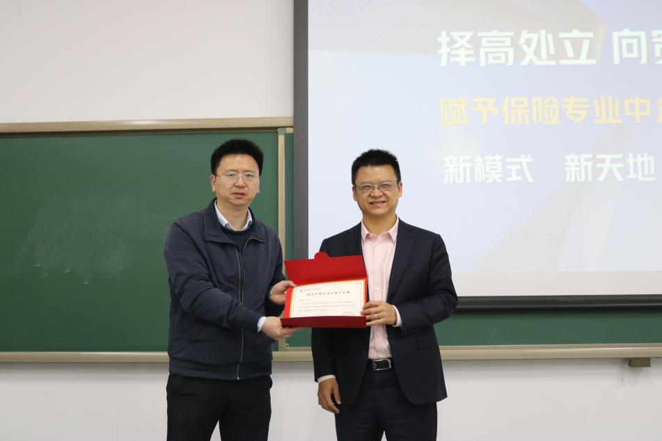 讲座结束后,周桦经理向蒋铭先生颁发了纪念证书,并对他精彩而富有启发性的讲座表示衷心感谢。此次讲座不仅加深了同学们对保险中介行业的了解,也激发了他们深入参与保险科技创新与实践的热情。