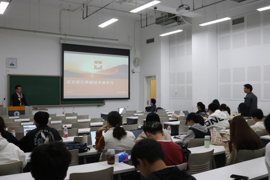 蒋铭先生特别强调,大童保险集团正积极布局全面风险管理战略,从风险的事前咨询、事中量化与转移,到事后的补偿与重建,构建贯穿个人与企业、财产险与人身险、境内与境外的完整服务链条。最后,他鼓励同学们积极面对行业转型带来的挑战,并强调风险管理和保险科技领域将迎来更多的创新机遇。