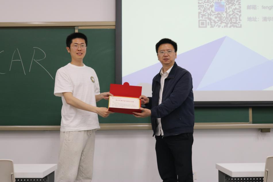 讲座结束后,周桦经理向冯韩先生颁发纪念证书,感谢其为同学们带来的精彩授课和宝贵分享。