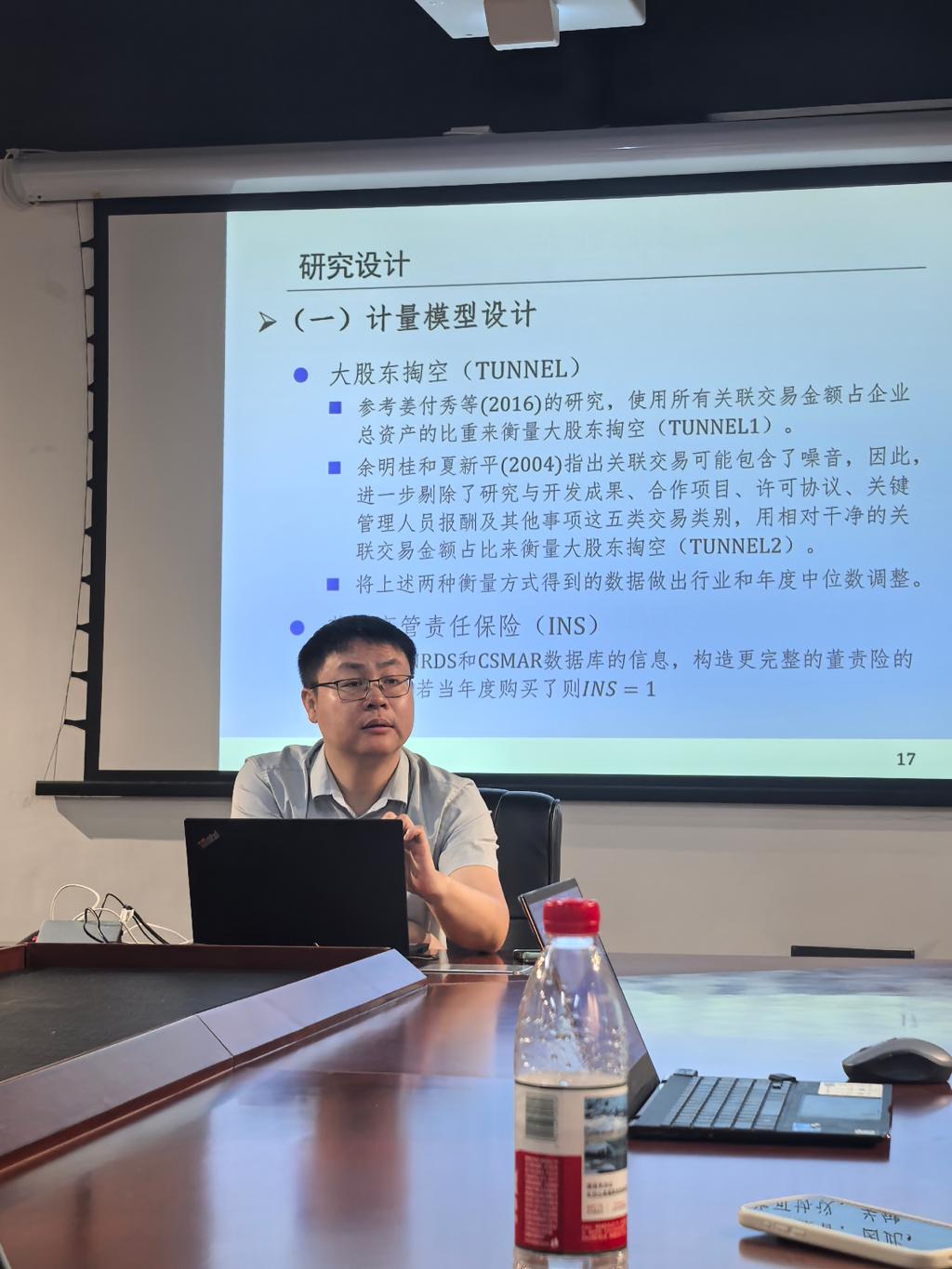 5月16日,永利集团官网2025年专题学术讲座暨风险管理与保险论坛(2025年度)第七讲在公司13号楼215会议室顺利举行。本次讲座邀请到武汉大学保险与精算系系主任王正文副教授担任主讲嘉宾,讲座主题为“董事高管责任保险与大股东掏空”。yl88858永利官网副经理王丽珍教授主持讲座,公司博士生及硕士生代表参与交流。本次活动获得永利集团官网2025年专题学术讲座、青年科研创新团队支持计划项目支持。