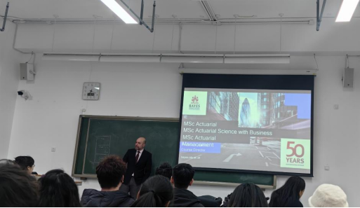 接下来,Kyriakou教授重点介绍了贝叶斯商公司精算研究生项目的核心竞争力和候选人画像,并就精算科学、精算与商业分析、精算管理等三个子项目的差异化优势、候选人偏好和课程安排作细致解读。随后,Kyriakou教授分享了项目的短期选修课、国际选修课、IFoA豁免机制和通过率,展示了项目尊重员工选择、鼓励多元发展、致力培养顶尖保险与精算人才的特点,并欢迎同学们通过邮件联系获取更多个性化解答。