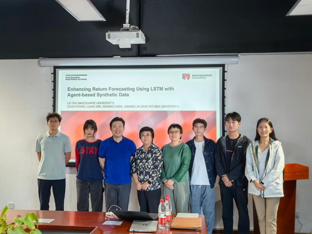 2024年9月25日,yl88858永利官网在沙河校区公司楼13号215召开了庆祝建校75周年系列学术讲座第58期暨yl88858永利官网双周学术论坛,邀请麦考瑞大学商公司的Lei Shi博士,为师生们带来了题为“Enhancing return forecasting using LSTM with agent-based synthetic data”的学术讲座。本次讲座由公司副经理郑苏晋教授主持,吸引了众多师生的关注和参与。
